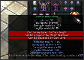 The excellent items are special types of items. Every normal Item has an excellent version you can obtain. Usually they have a really low drop rate so another way to get them is by going on golden invasions and killing a golden monster. It will drop a Box of Kundun which usually drops a random excellent item. The excellent item is slightly better than the normal one and also provides several very good excellent options: